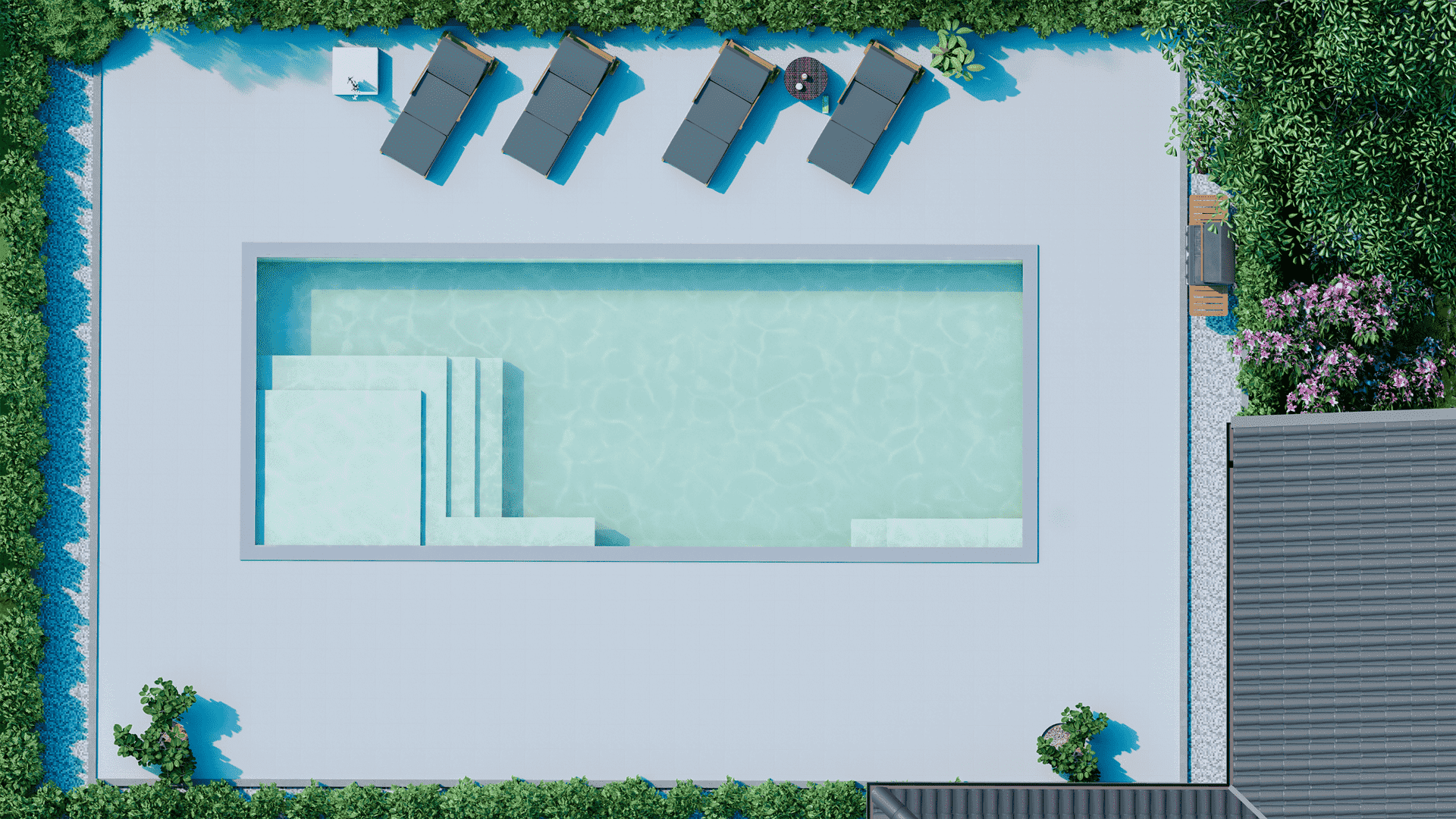 Hides cover tracks under the pool coping for protection and a clean look.